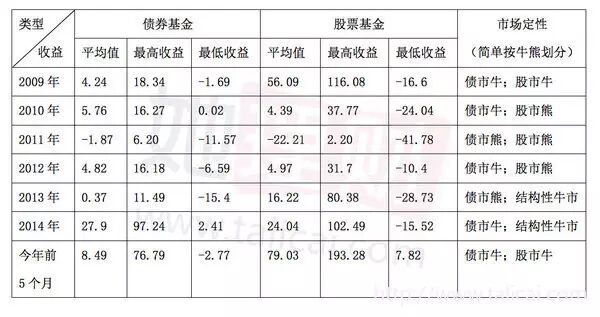 (3)在2014年和今年前5个月里,涨幅好的基金几乎都是可转债基金或二级债基,由于配置了一定权重的股票,所以收益不错,甚至超过了同期很多股票型基金。