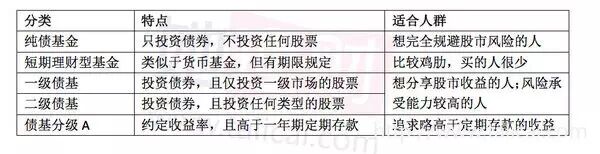 先来看债基的分类及特点,见下表: