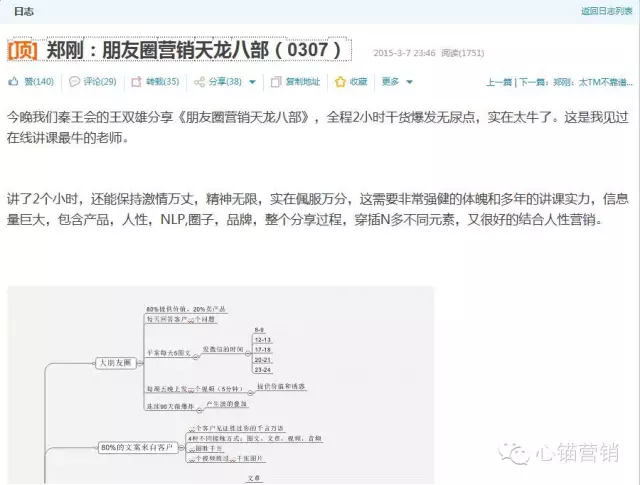 如下图,是学员兼好友郑刚写的日志,为什么以往他一篇日志刚出来时就一百多阅读量,而这篇一出来就一千多阅读量呢?至少带给他100个粉丝(客户)!其核心就是用了诱惑转发: