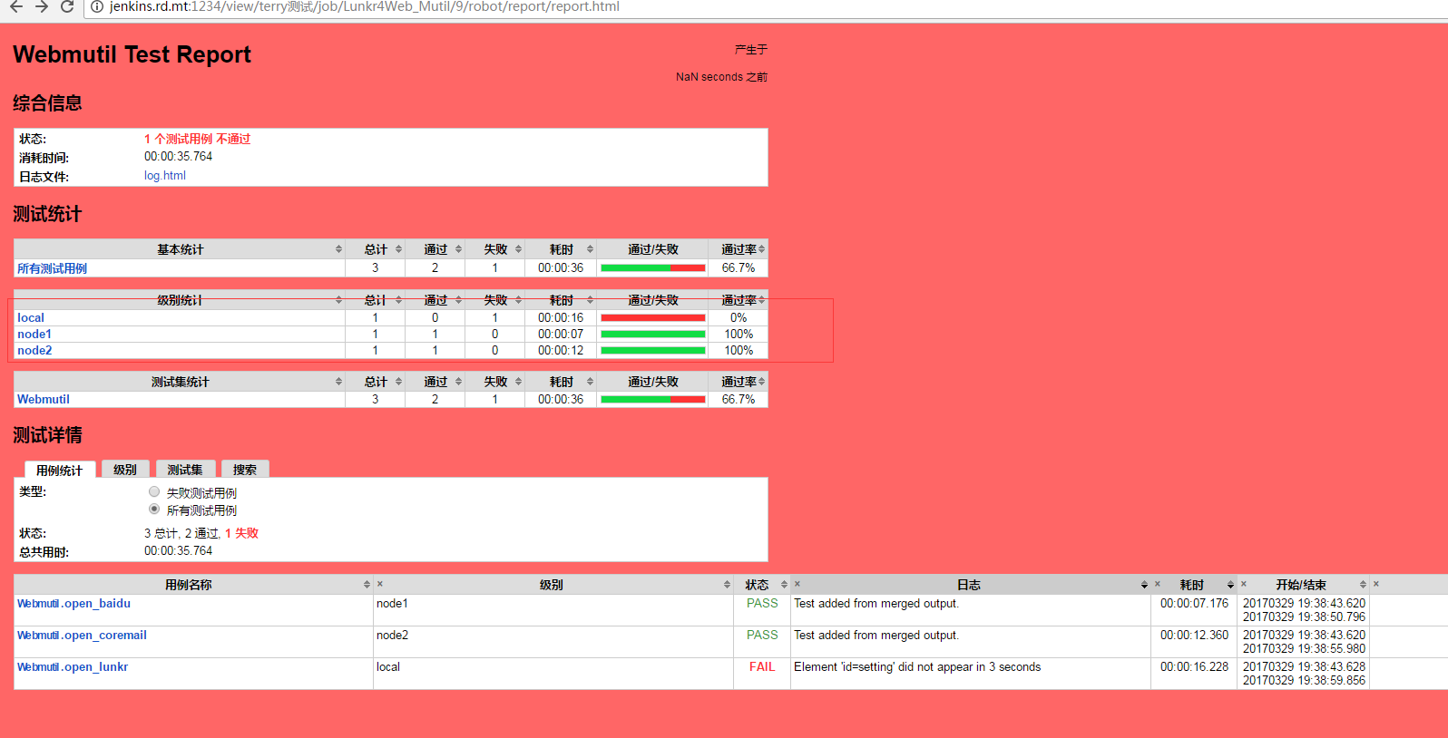 提升的速度不多,原因是我分配到各节点的用例不均匀,但这个起码从本质上提高了自动化测试执行的效率,只要分配好执行的用例,效率肯定会很明显的提高的